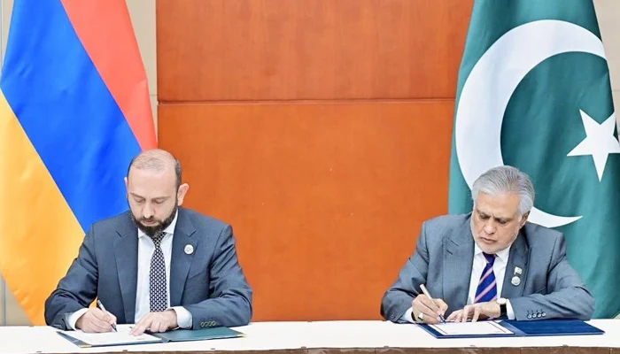 In an X post, FM Dar said that he and his Armenian counterpart Ararat Mirzoyan “are pleased to sign and exchange a Joint Communiqué establishing diplomatic relations between Pakistan and Armenia, on the sidelines of the 25th SCO Summit in Tianjin, China.”