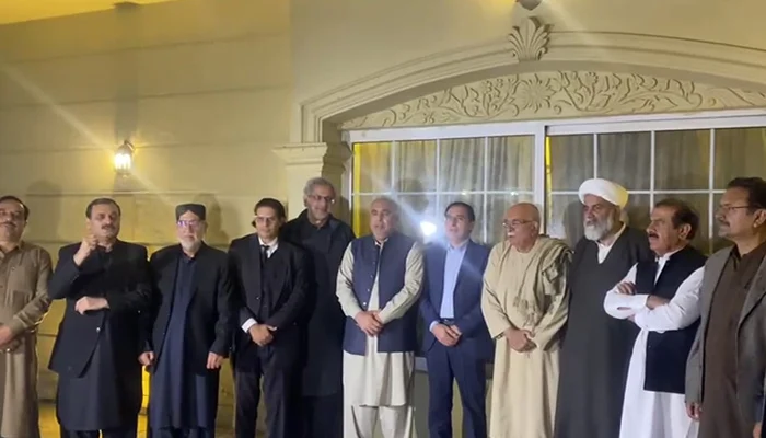 Today’s session was attended by TTAP Secretary General Asad Qaiser, Majlis Wahdat-e-Muslimeen (MWM) chief Allama Raja Nasir Abbas, PTI Chairman Barrister Gohar Ali Khan, PTI Secretary General Salman Akram Raja, Awaam Pakistan convener Shahid Khaqan Abbasi, Balochistan National Party (BNP) chief Akhtar Mengal, Sindh United Party’s Zain Shah, BNP’s Sajid Tareen, TTAP Vice Chairman Mustafa Nawaz Khokhar, PTI Additional Secretary General Firdous Shamim Naqvi, TTAP spokesperson Hussain Yousafzai, PTI founder Imran Khan’s counsel Khalid Yousaf Chaudhry, PTI KP Secretary General Ali Asghar Khan, and PTI Deputy Secretary General Shaukat Basra.