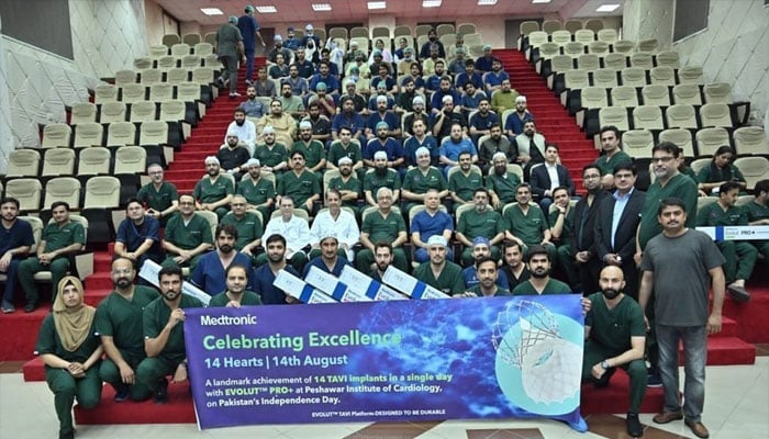 پشاور انسٹیٹیوٹ آف کارڈیالوجی نے ایک تاریخی اعزاز اپنے نام کرلیا، اسپتال نے 14 اگست کو ایک ہی دن میں 14 ٹرانس کیتھیٹرک اے اورٹک والو امپلانٹیشن (TAVI) سرجریز کر کے عالمی ریکارڈ قائم کیا۔