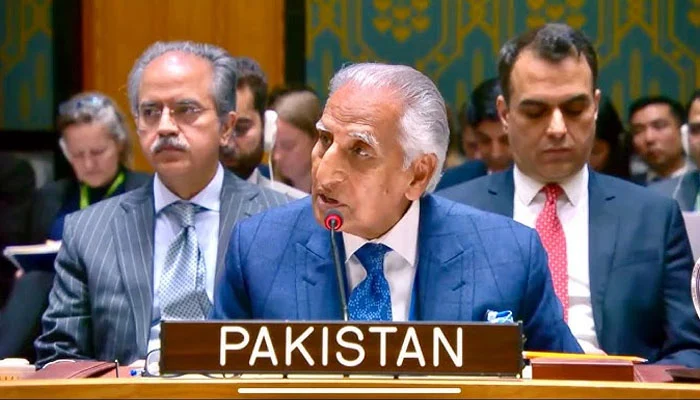 سلامتی کونسل سے خطاب میں طارق فاطمی نے کہا کہ پاکستان فریقین سے تحمل اور برداشت سے کام لینے کا مطالبہ کرتا ہے۔
