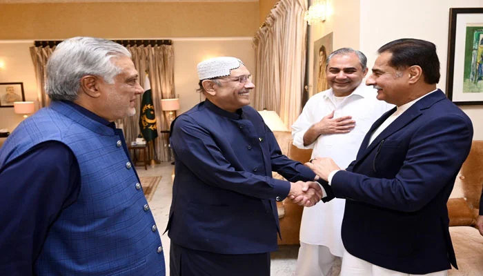 ذرائع کے مطابق نائب وزیراعظم اسحٰق ڈار نے صدر زرداری سے پارٹی رہنماؤں کی جانب سے جاری بیان بازی روکنے کی بات کی۔