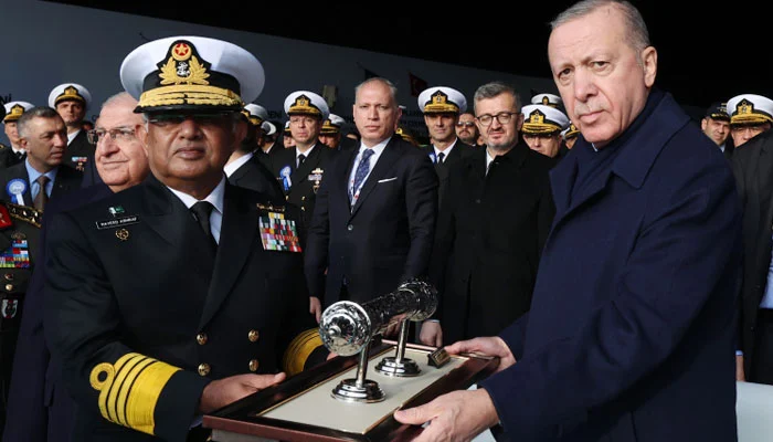 صدر اردوان نے پاکستان کے ساتھ 2018 میں طے پانے والے چار مِلگیم (MİLGEM) جنگی جہازوں کے معاہدے پر پیش رفت سے آگاہ کرتے ہوئے کہا کہ ستمبر 2018 میں ہم نے پاکستان بحریہ کی ضروریات کو پورا کرنے کے لیے چار مِلگیم جہازوں کی تعمیر کا معاہدہ کیا تھا، پہلا جہاز PNS بابر 24 مئی 2024 کو پاکستان کے حوالے کیا گیا، آج ہم مکمل کامیاب آزمائشوں کے بعد PNS خیبر کی حوالگی بھی کر رہے ہیں۔