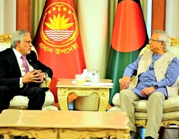 نائب وزیرِاعظم اسحاق ڈار نے بنگلادیش حکومت کے سربراہ محمد یونس سے ملاقات کی ہے۔ چیف ایڈوائزر محمد یونس سابق وزیرِ اعظم بنگلا دیش شیخ حسینہ واجد کی جلاوطنی کے بعد بنگلا دیش کے سربراہ بنے تھے۔ ترجمان دفترِ خارجہ مزید پڑھیں