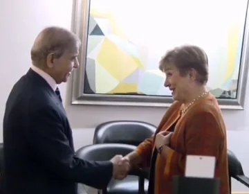 اقوام متحدہ کی جنرل اسمبلی کے 80 ویں اجلاس کے موقع پر وزیراعظم شہباز شریف سے عالمی مالیاتی فنڈ (آئی ایم ایف) کی منیجنگ ڈائریکٹر کرسٹالینا جارجیوا کی ملاقات ہوئی ہے۔ وزیراعظم شہباز شریف نے پاکستان کے ساتھ آئی ایم مزید پڑھیں